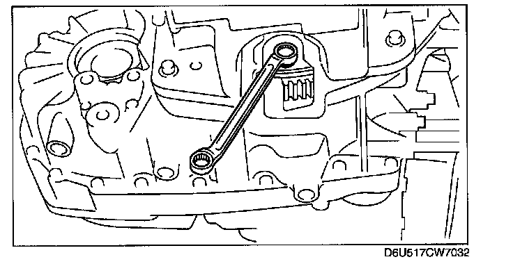 Caution: Loosely and equally tighten the torque converter nuts, then further tighten them to the specified tightening torque.