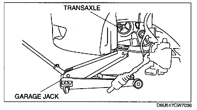 Warning: Improperly jacking a transaxle is dangerous. It can slip off the jack and may cause serious injury.