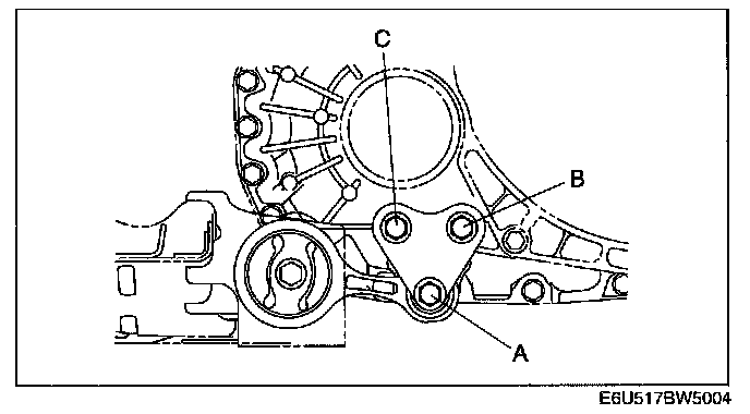 2. Temporarily tighten bolt A, then tighten bolts B, C.