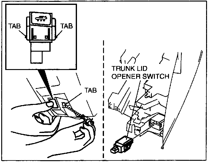3. Push the trunk lid opener switch into the dashboard and remove.