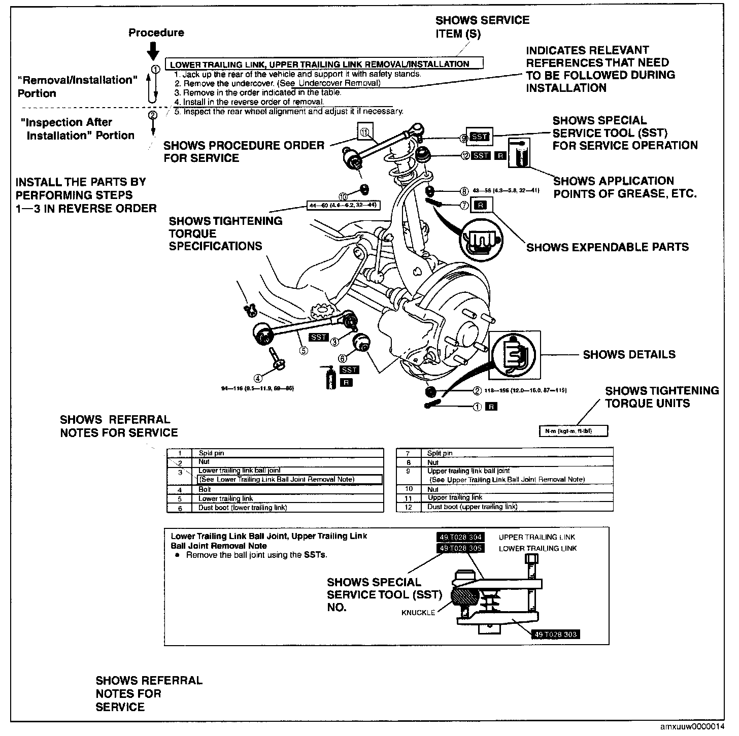 2. Expendable parts, tightening torques, and symbols for oil, grease, and sealant are shown in the overview illustration. In addition, symbols indicating parts requiring the use of special service tools or equivalent are also shown.
