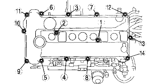 Caution: Install the cylinder head cover within 10 minutes of applying the silicone sealant.