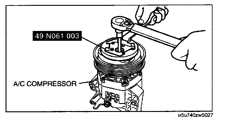 1. Remove the A/C compressor pulley using the SST (49 0839 425C).