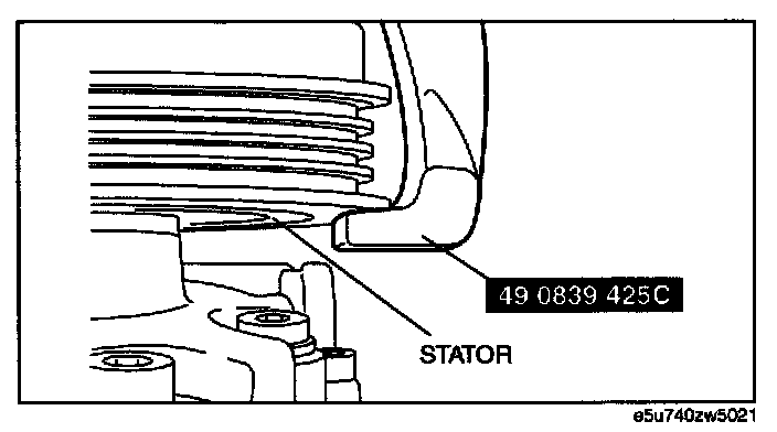 CAUTION: Be careful that the SST (49 0839 425C) tabs do not hang over the stator.