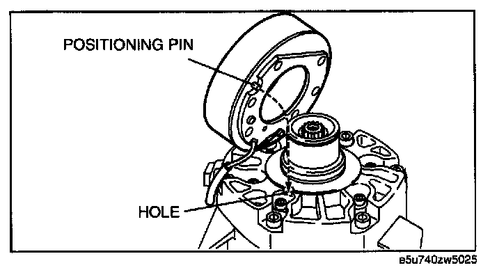 1. Align the positioning pin with the hole of A/C compressor body and insert.
