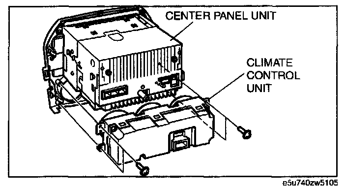 5. Remove the climate control unit from the center CENTER PANEL UNIT panel unit.