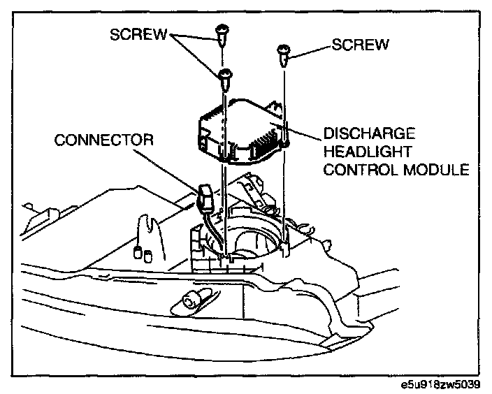 DISCHARGE HEADLIGHT CONTROL MODULE REMOVAL/INSTALLATION