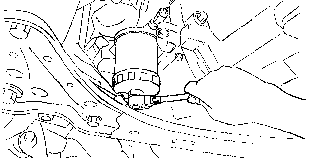 1. Remove the oil filter using a commercially available, cup-type oil filter wrench (76 mm (3.0 inch) diameter, 15 sided).