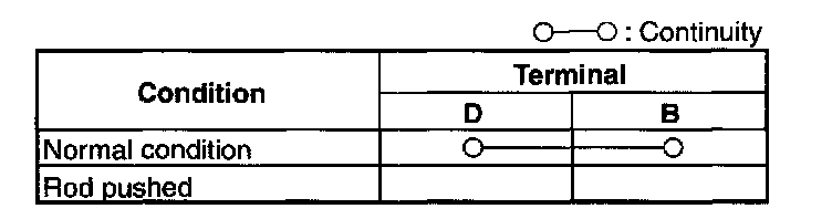 2. Verify that the continuity between CPP switch terminals D and B is as indicated in the table.