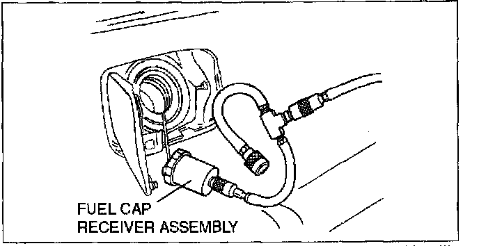 3. Connect the fuel cap receiver assembly (part of SST) to the manifold assembly and fuel-filler cap from the vehicle.