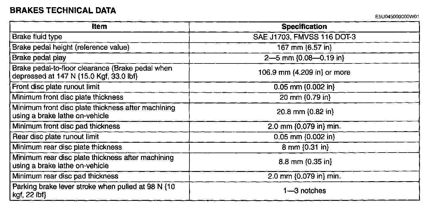 BRAKES TECHNICAL DATA: