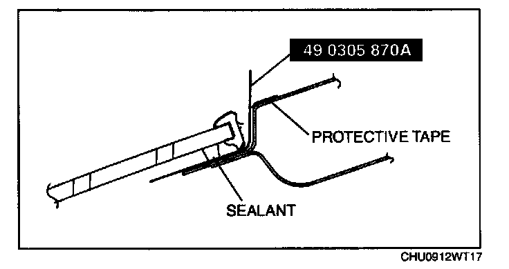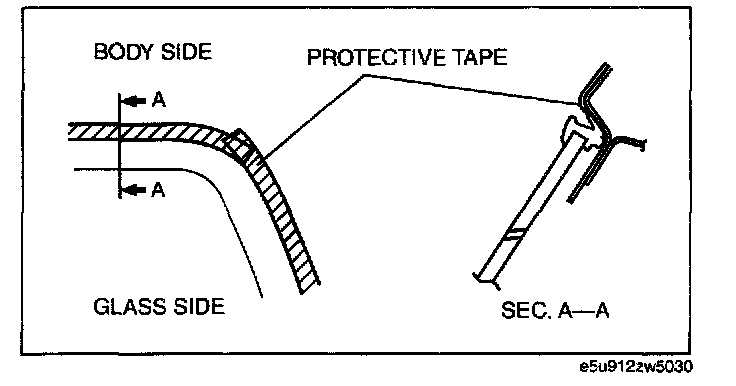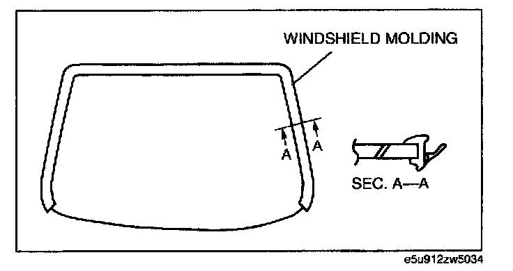 NOTE: Before removing the windshield from the body, mark the position of the windshield by affixing tape to the windshield and body panel.