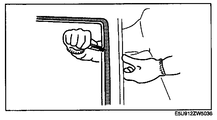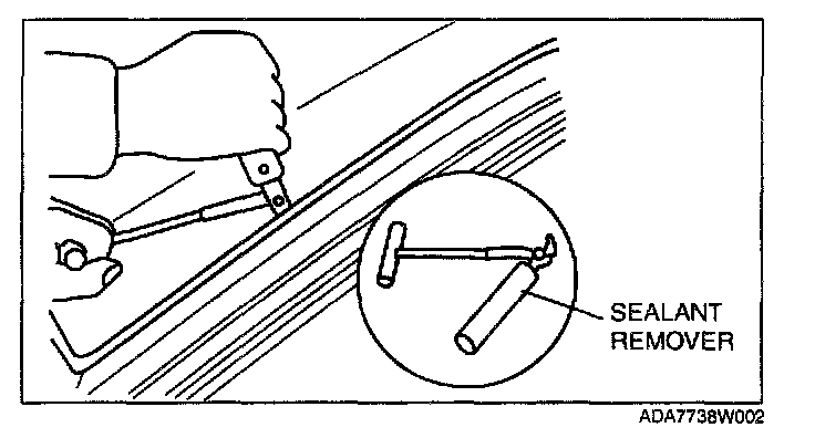 NOTE: For the areas of the sealant that are difficult to cut, use the SST (piano wire) and follow the procedure under "Reusing Windshield".