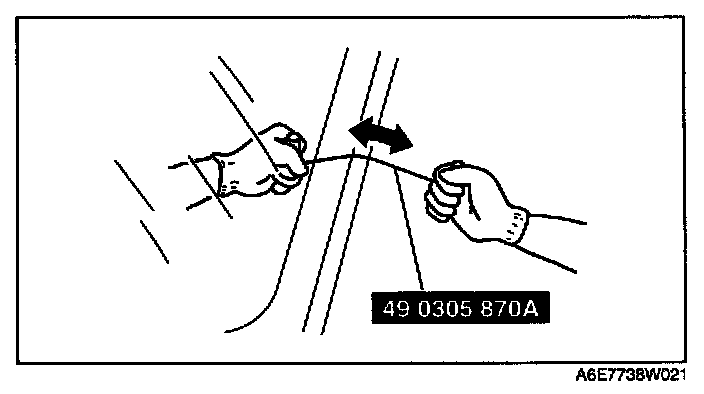 3. Secure one end of the SST (piano wire), and while pulling the other end, cut the sealant around the windshield.