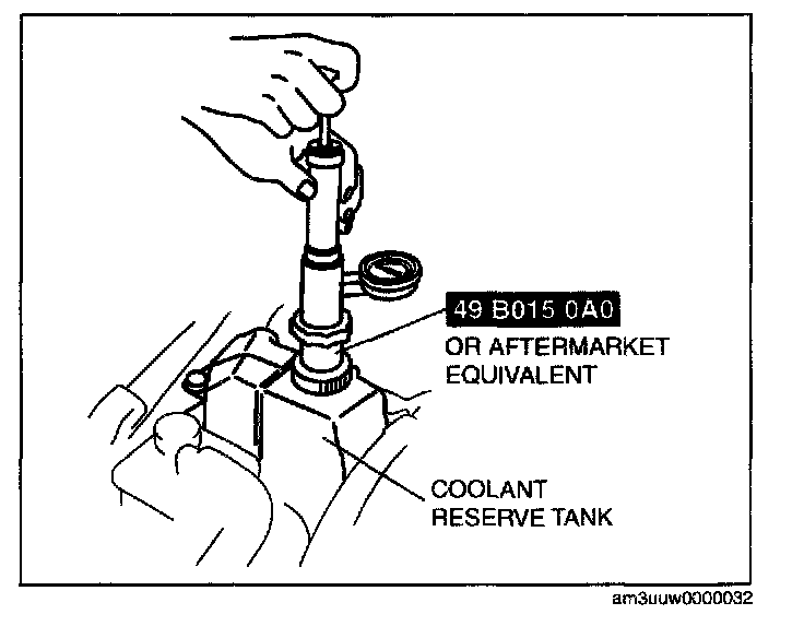 3. Install the SST or aftermarket equivalent and a radiator cap tester to the coolant reserve tank filler port.