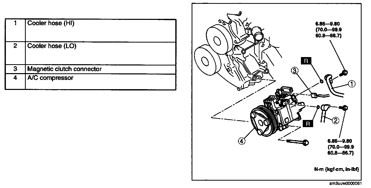 5. Remove in the order indicated in the table. Do not allow compressor oil to spill.