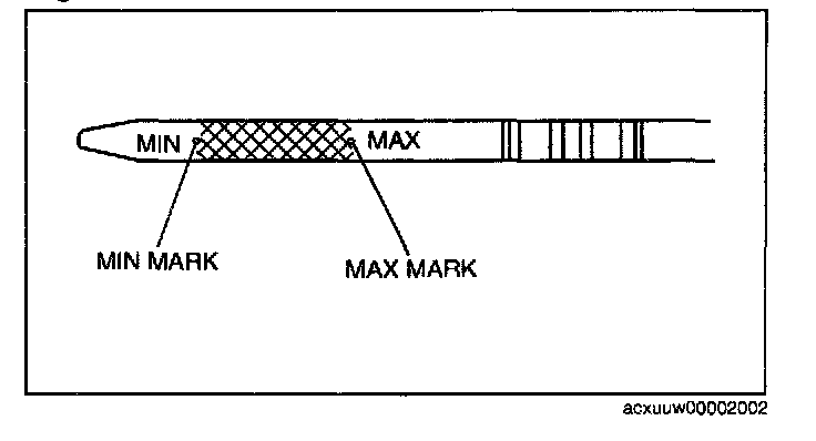 4. Remove the dipstick and verify that the oil level is between the MIN and MAX marks on the dipstick.