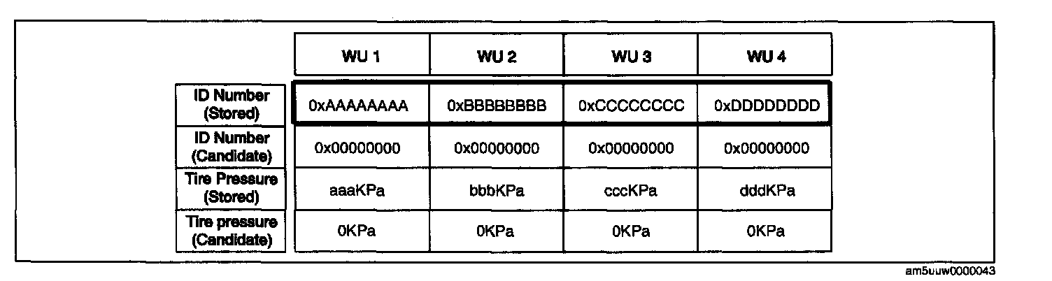 Note: When the vehicle is driven, the four ID numbers in the bold cell of the chart change at the same time the ID registration finishes.