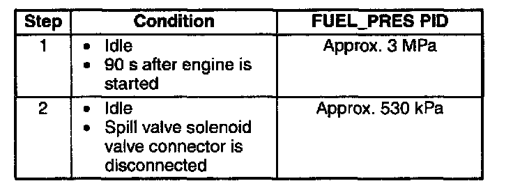 4. After warming up the engine, verify that the FUEL_PRES PID is at the standard value under the following conditions.