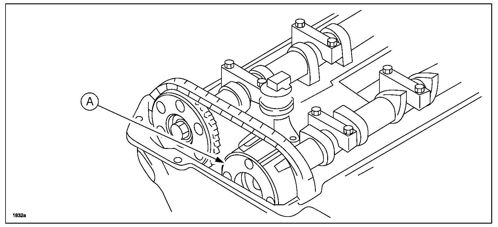 When the engine is first started, some vehicles may exhibit a loud ticking noise from the variable valve timing (VVT) actuator (A). This is caused by the lock pin of the variable valve timing actuator not fully engaging or from a worn lock pin hole