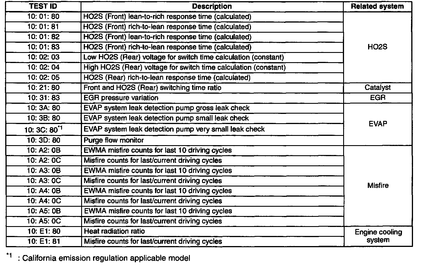 DIAGNOSTIC MONITORING TEST RESULTS[L3 WITH TC]- The purpose of this test mode is to confirm the result of the OBD-II monitor diagnostic test results. The result values stored when a particular monitor is completed are displayed. If the monitor is not completed, the initial value is displayed.