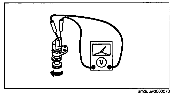 2. Measure the voltage between the vehicle speed sensor terminals while the gear is turning.
