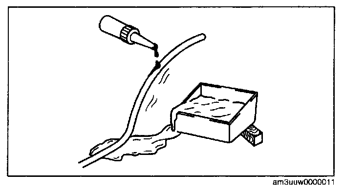 NOTE: Referring to the fluorescent dye instruction manual, mix the specified amount of dye into the engine oil or ATF (or transaxle/transmission oil).