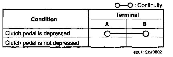 - If the continuity is not as indicated in the table, replace the starter interlock switch.