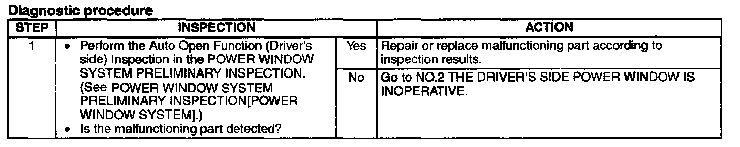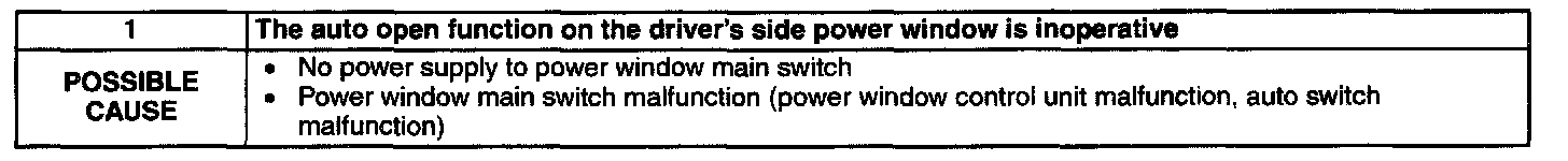 No.1 the Auto Open Function on the Drivers Side Power Window Is Inoperative