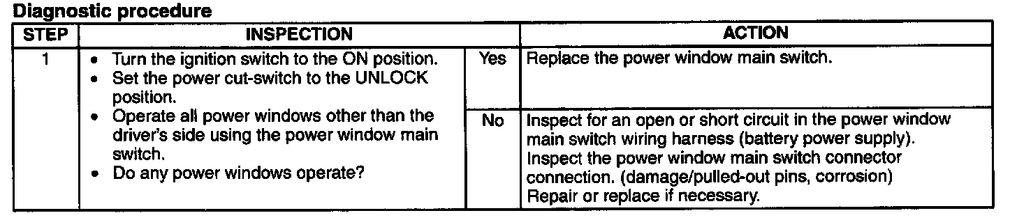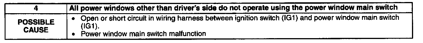 No.4 All Power Windows Other Than Driver's Side Do Not Operate Using the Power Window Main Switch