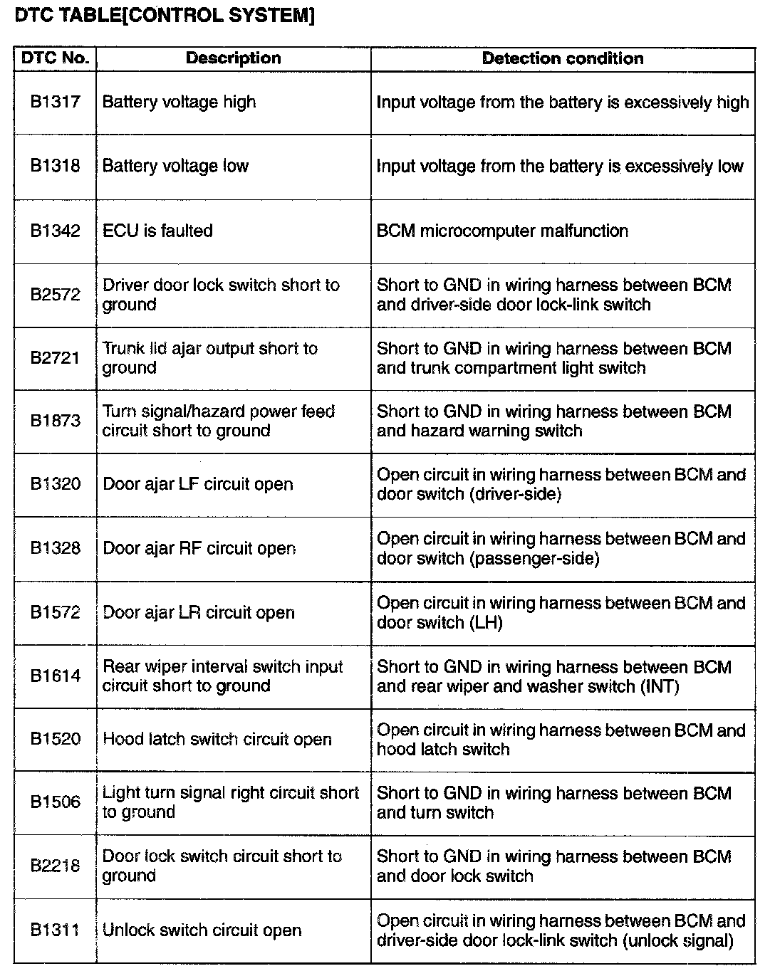 Diagnostic Trouble Code Descriptions