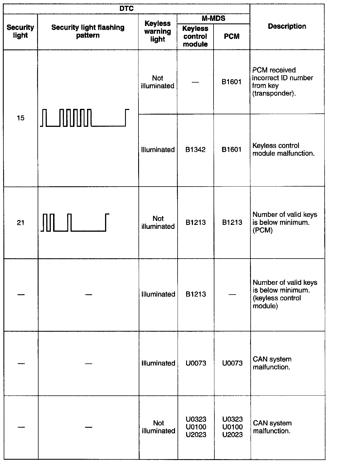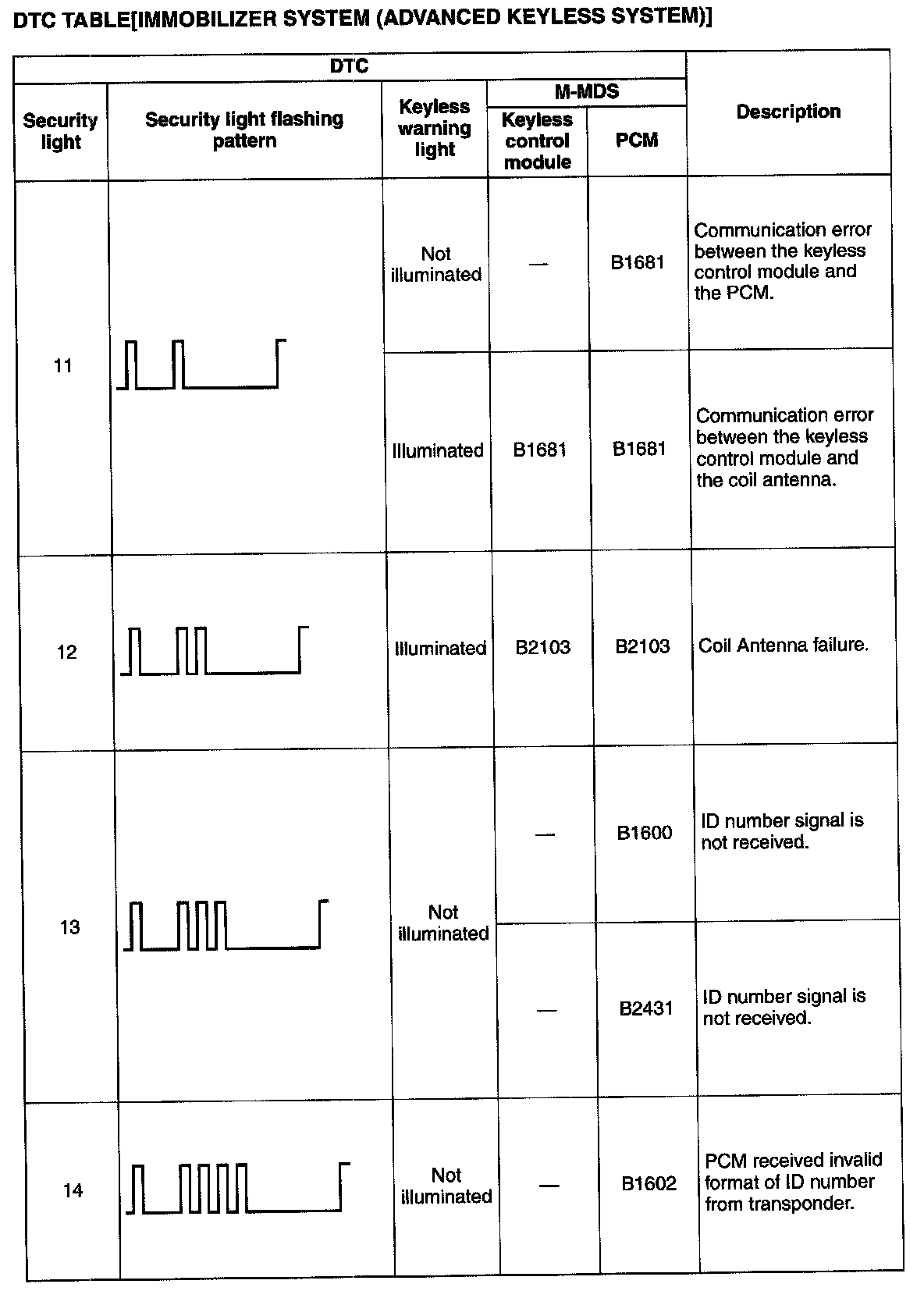 DTC Table [Immobilizer System (Advanced Keyless System)]:
