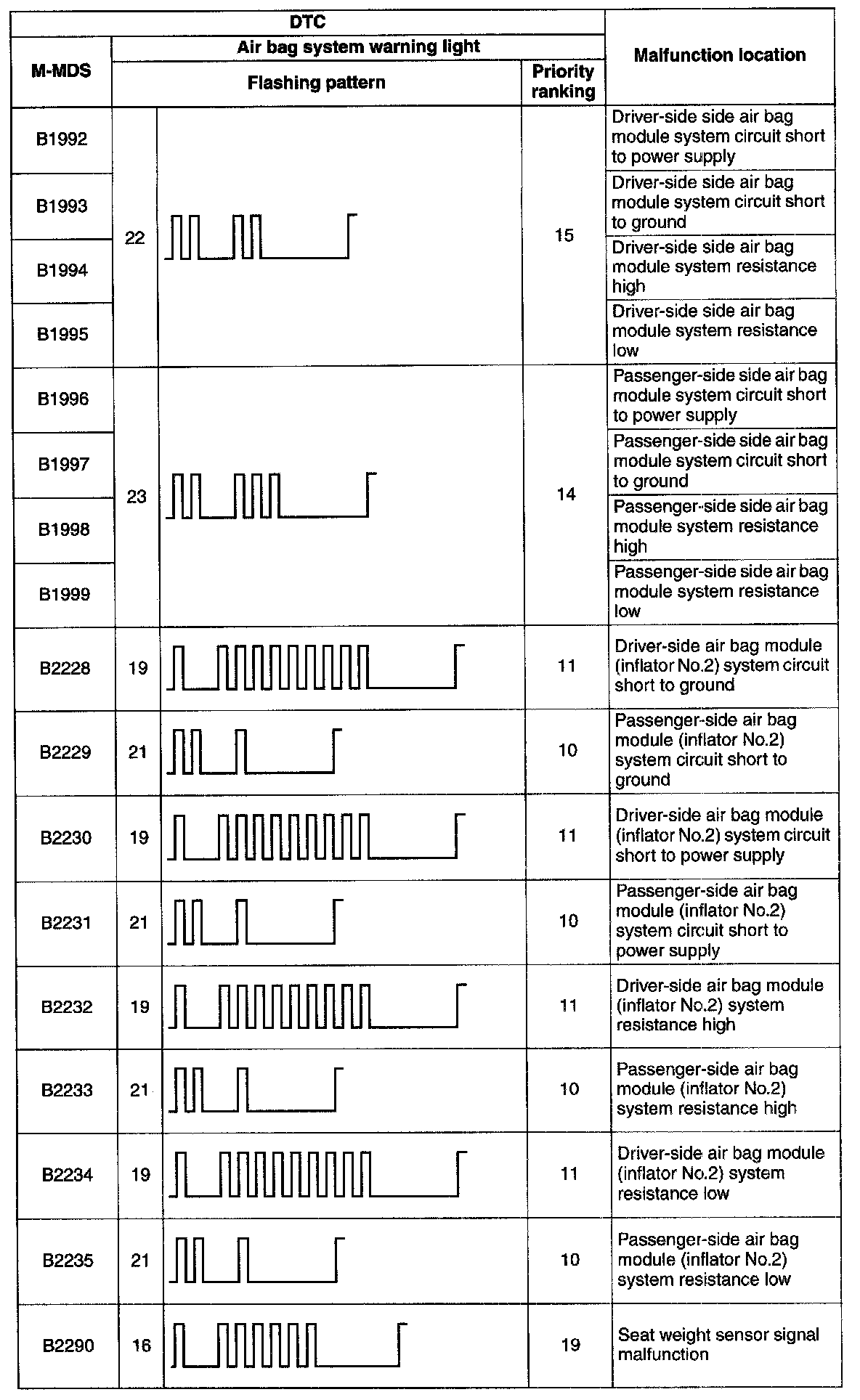- The air bag system warning light will flash the DTC pattern for five cycles, and then it will remain illuminated until the ignition switch is turned to the LOCK position.
