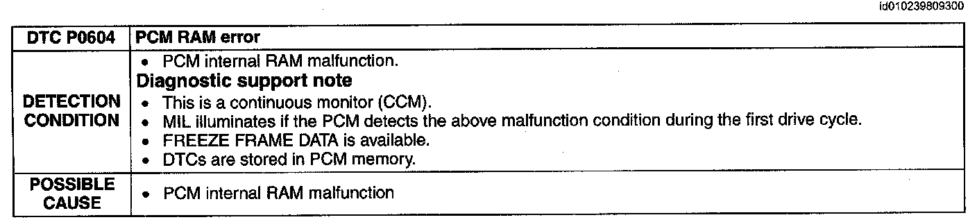 Detection Condition/Possible Cause: