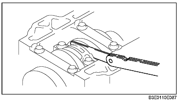 2. Using a plastigauge, measure the oil clearance at the large end of the connecting rod. If it is at the maximum specification or more, replace the bearing or grind the crank pin and use oversize bearings so that the specified clearance is obtained.