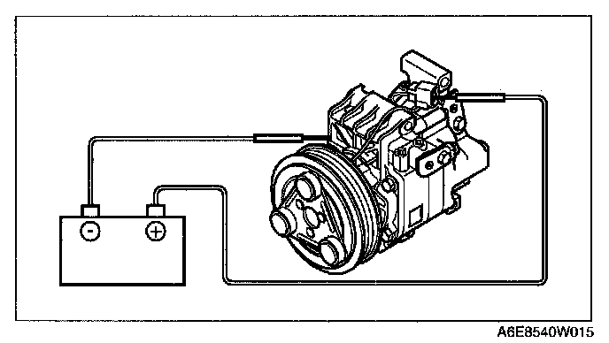 1. Connect battery positive voltage to terminal A of magnetic clutch and ground to A/C compressor body.