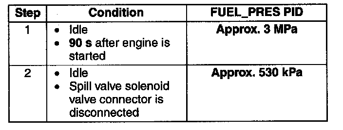 5. After warming up the engine, verify that the FUEL_PRES PID is at the standard value under the following conditions.