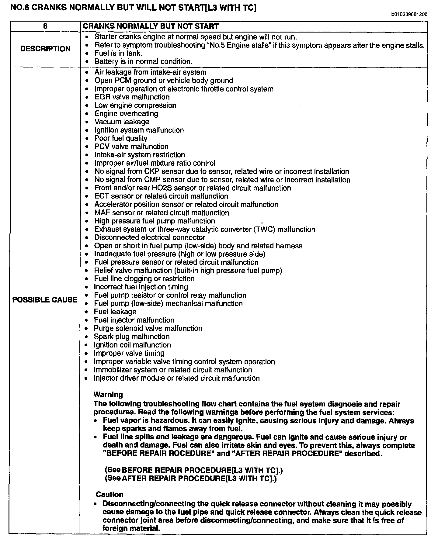 No.6 Cranks Normally But Will Not Start