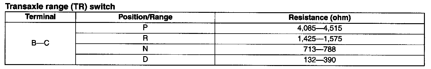 Transmission Position Sensor/Switch: Specifications