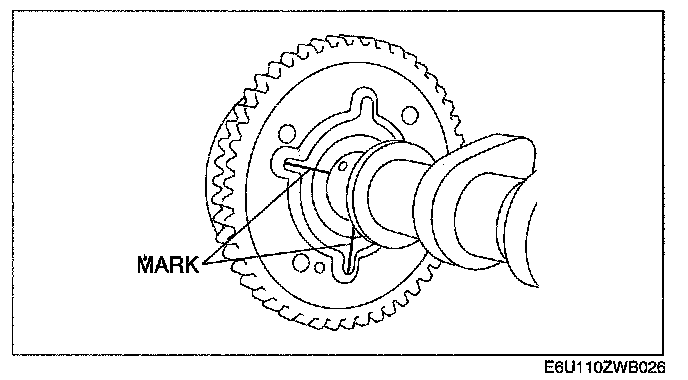 (1) Place alignment marks on the camshaft and variable valve timing actuator as shown in the figure so that the variable valve timing actuator is re-assembled in its original position.