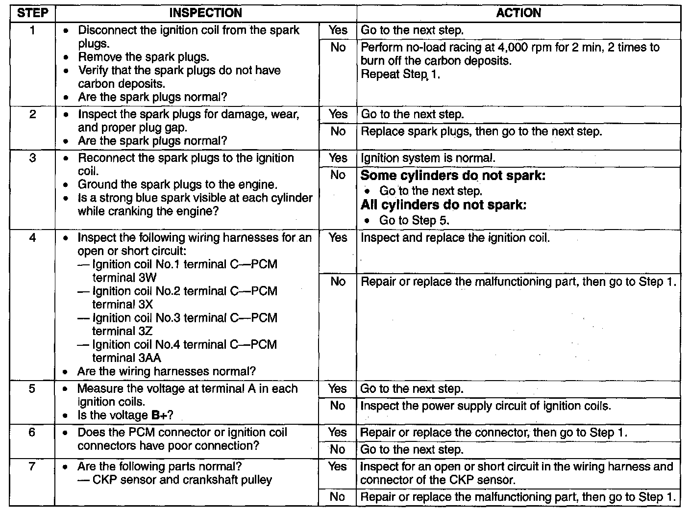 4. Inspect the ignition system in the following procedure.
