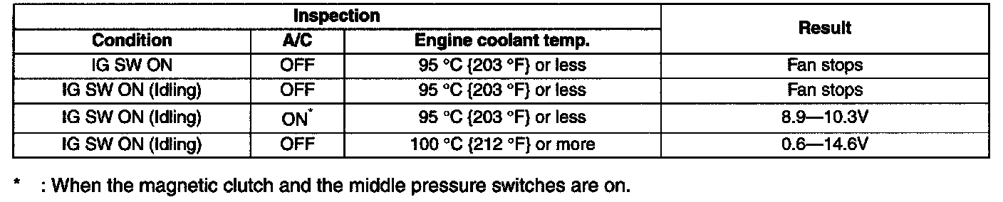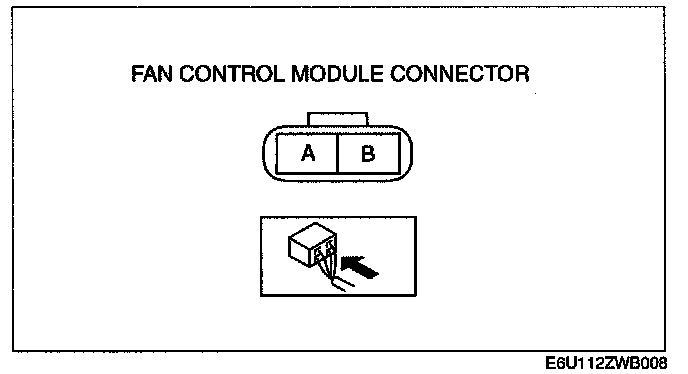 4. Measure the voltage at terminal A of the fan control module connector (2 terminals) as shown in the table.