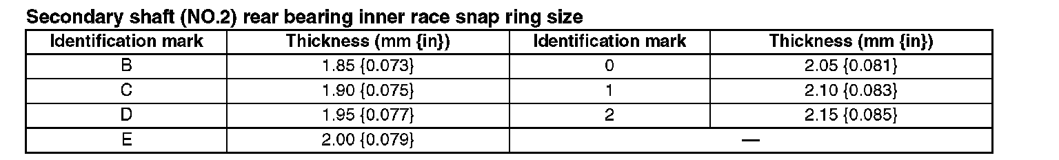 Secondary shaft (NO.2) rear bearing inner race snap ring size