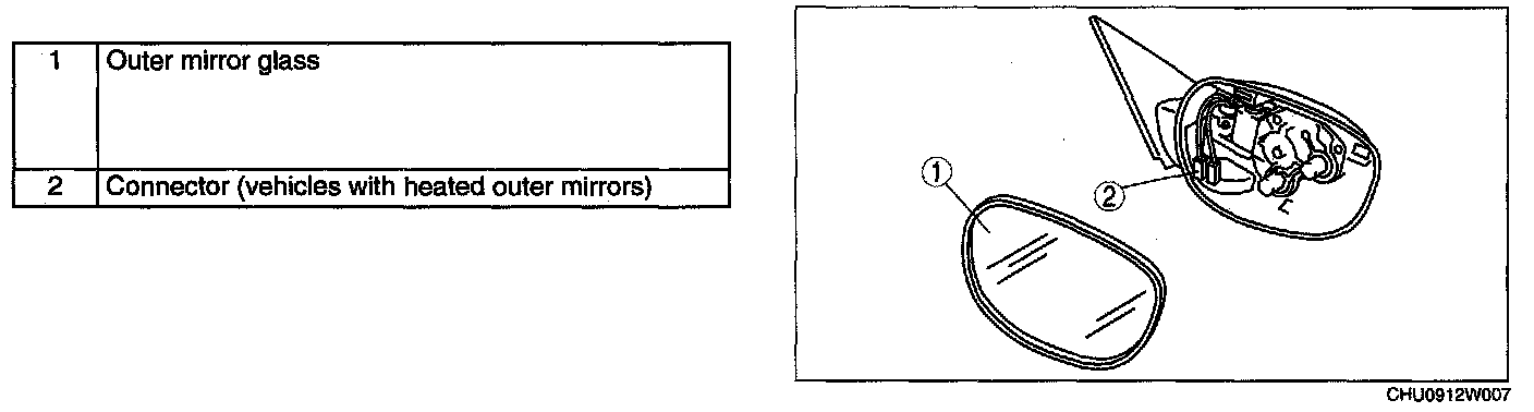 POWER OUTER MIRROR DISASSEMBLY/ASSEMBLY1. Disassemble in the order indicated in the table.