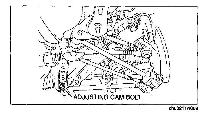 2. Rotate the adjusting cam bolt in either direction to adjust the camber.