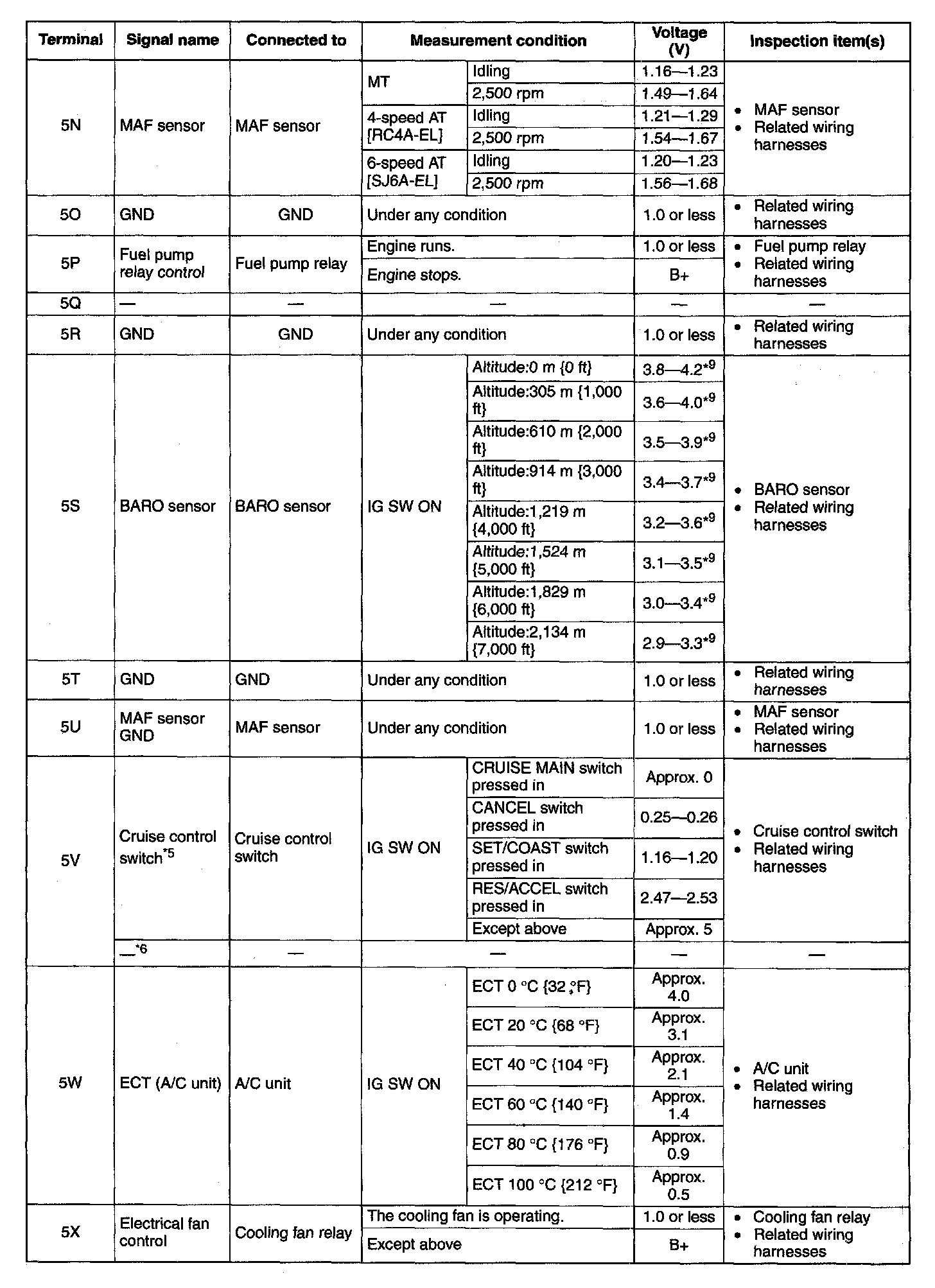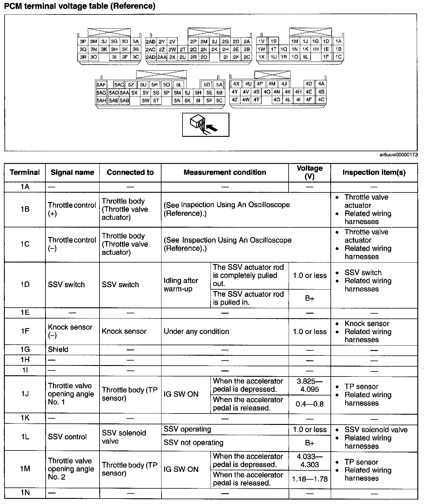 PCM Terminal Voltage Table (Reference):
