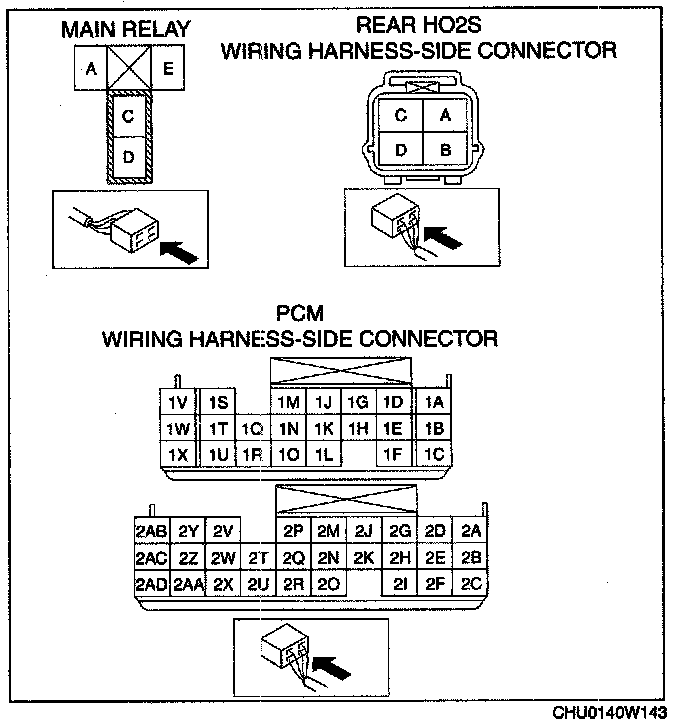- Rear HO2S terminal C and main relay terminal C