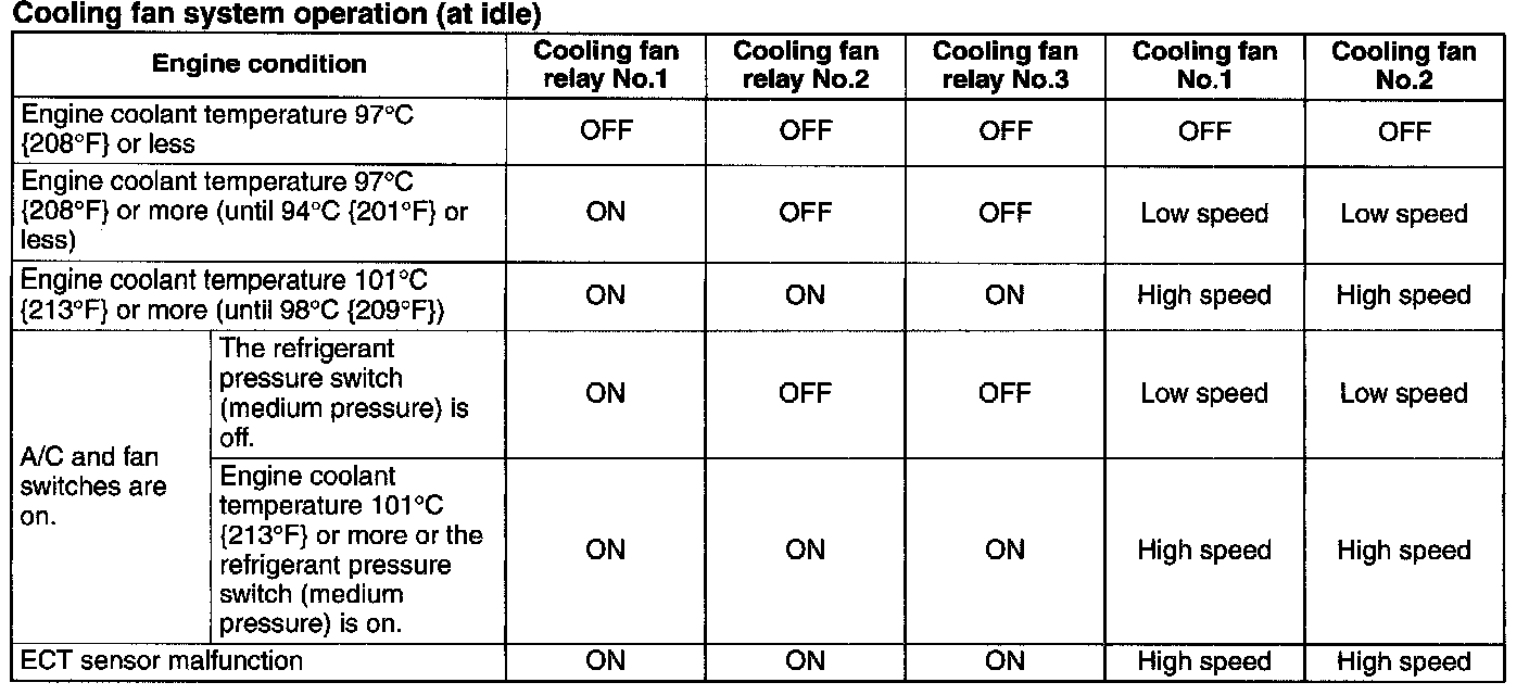 Cooling Fan System Operation (at Idle):