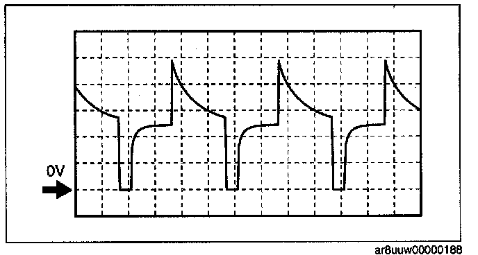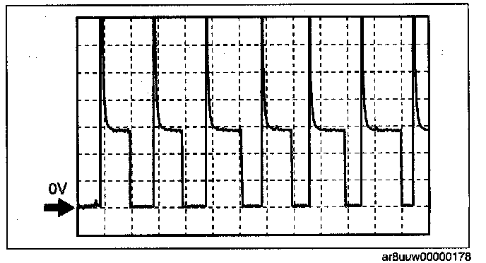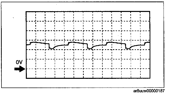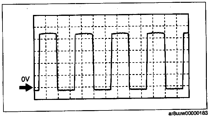 NOTE: The duty ratio for the wave pattern can vary with the control conditions. Therefore determine comprehensively where the malfunction occurs among the input systems, output systems, and the PCM.