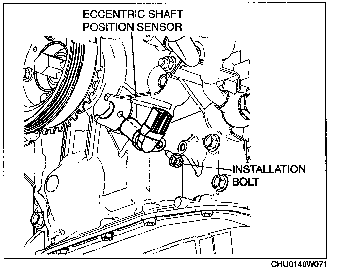 ECCENTRIC SHAFT POSITION SENSOR REMOVAL/INSTALLATIONCAUTION: When replacing the eccentric shaft position sensor, make sure there is no foreign material on it such as metal shavings. If it is installed with foreign material, the sensor output signal will malfunction resulting from fluctuation in magnetic flux and cause a deterioration in engine control.